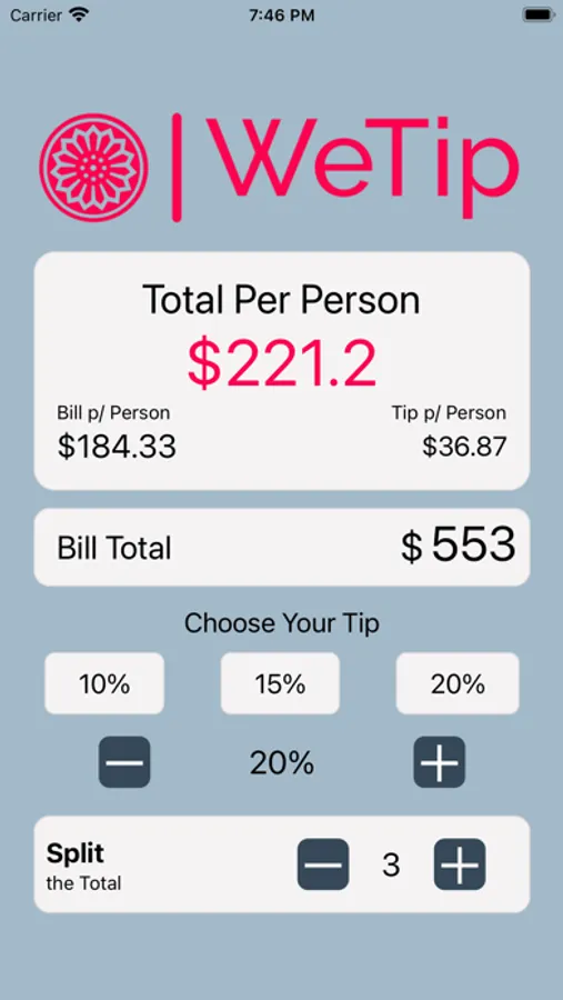 Figuring out the tip and splitting the bill made easy. Simply type in the amount, how many people are splitting the bill, and the percentage of tip, and viola! End your meal on a pleasant note.