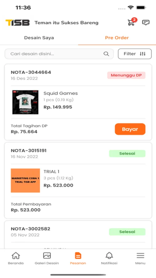 Dari aplikasi ini kamu bisa melihat laporan pengerjaan desain hingga proses produksi selesai pada waktu sebenarnya.
