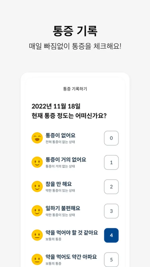 [통증기록] 운동을 하며 변하는 나의 통증을 기록하고 조회할 수 있어요.