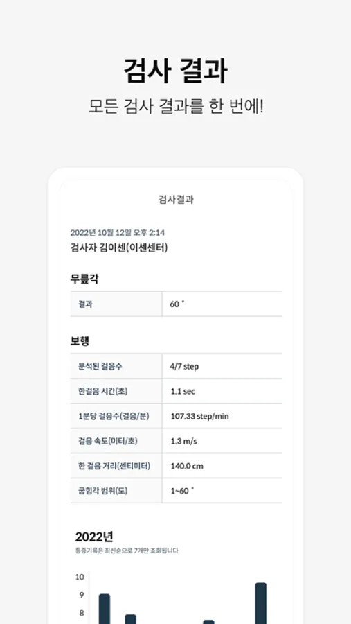 [검사결과] 센터에서 한 신체기능검사결과를 조회할 수 있어요.