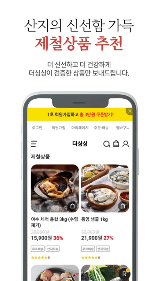 - 어플 다운 후 회원가입시 3만원 상당의 할인쿠폰 증정!