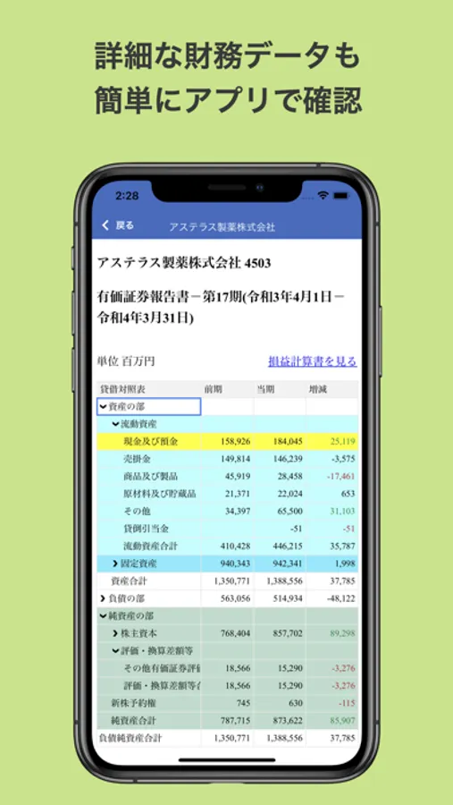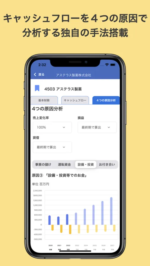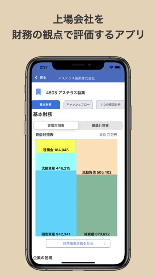 したがって、本アプリはこれらの財務諸表の細かな分析結果と、その結果に基づく将来の予測をグラフなどで、経理・財務の知識のない一般投資家に分かりやすく表示し、株式市場の正しい発展に寄与するために開発されました。