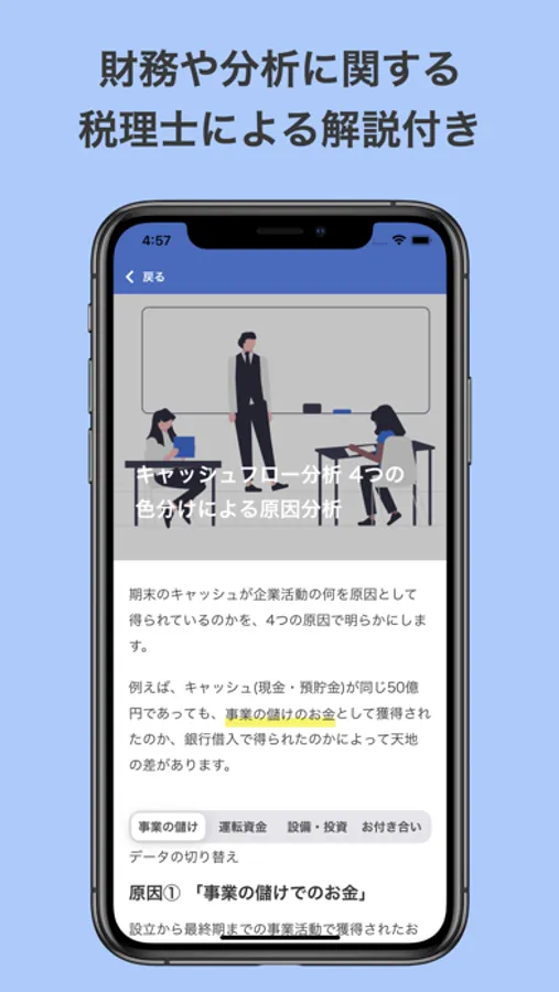 (4)また、上記のアプリで表示する企業の将来5年間のキャッシュフローの表示のために使用するソフトは、税理士・公認会計士等の財務の専門家が、20数年にわたり企業の経営計画、再建計画のために活用してきたものであることから、本アプリでは上場企業以外の中堅・中小企業のために財務予測を行うサービスの機能も持ちます。