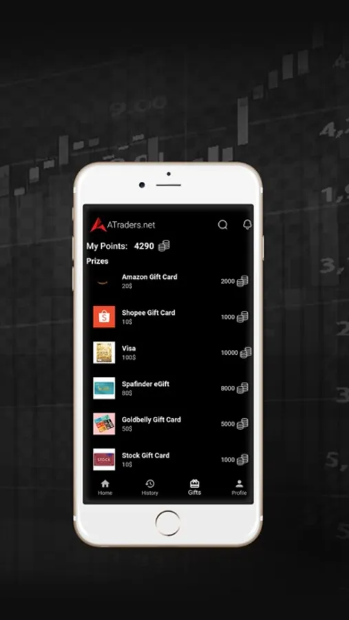 You can also predict the winners of today's matches to collect points to redeem gift cards and prizes. You can also gain points by inviting users to ATraders Pro