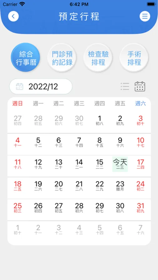 4. 預定行程: 預定治療(門診、住院、手術)期程規劃行事曆、時程調整線上申請(限特定科別之專案)