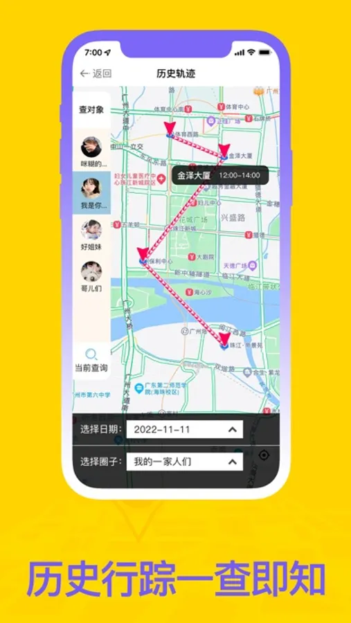 手机定位是一款先进的定位APP,关爱家人、守护情人、关心好友,统统都可以一键定位,实时共享位置信息。不再担心亲友晚上打车、夜出办事的安全性,更能一键知道配偶/情侣在哪,一键知道孩子是否安全到校。爱他们,就给他们最好的呵护,实时了解他们的的安全和行程轨迹,随时掌握他们的位置安全。还可以邀请一起加入共享圈子共享您的位置信息,让他们也来守护你吧。产品支持查询最近七天内所有成员的历史行程轨迹,让你更清晰的了解对方的行程。产品的不断升级,需要更多用户的支持,我们真诚希望收到更多的用户建议,让我们的产品不断得到改进,给用户提供一个更便捷、更准确的定位产品。