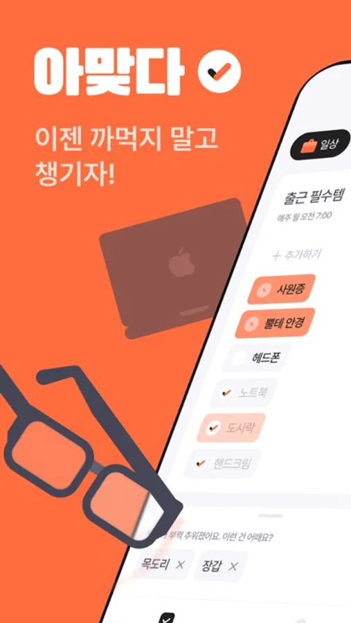 간편하게 등록하고 챙길 때마다 체크해요