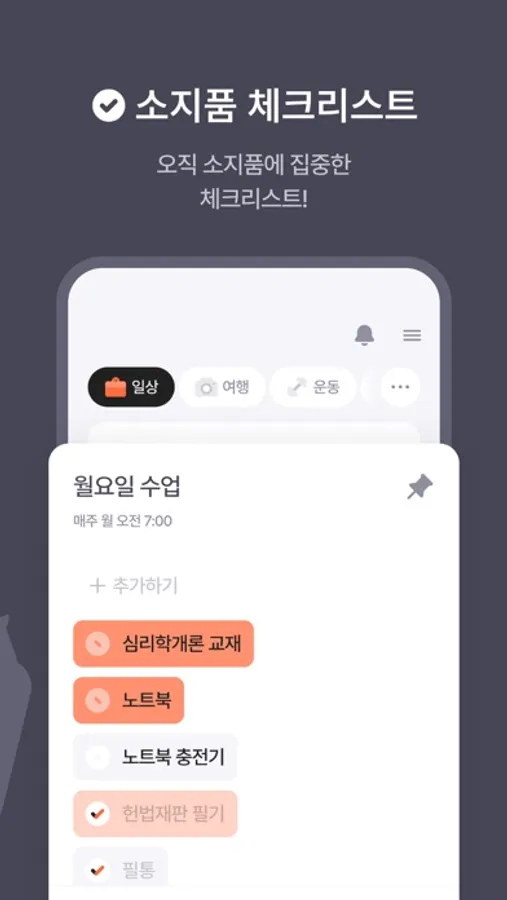 오직 소지품에만 집중한 체크리스트