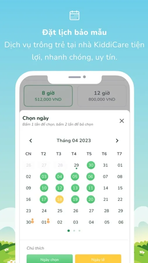 KiddiCare: Dịch vụ trông trẻ tại nhà - kết nối phụ huynh với giáo viên mầm non và bảo mẫu chuyên nghiệp. Phụ huynh có thể dễ dàng đặt lịch trông trẻ theo giờ nhanh chóng - tiện lợi - uy tín.