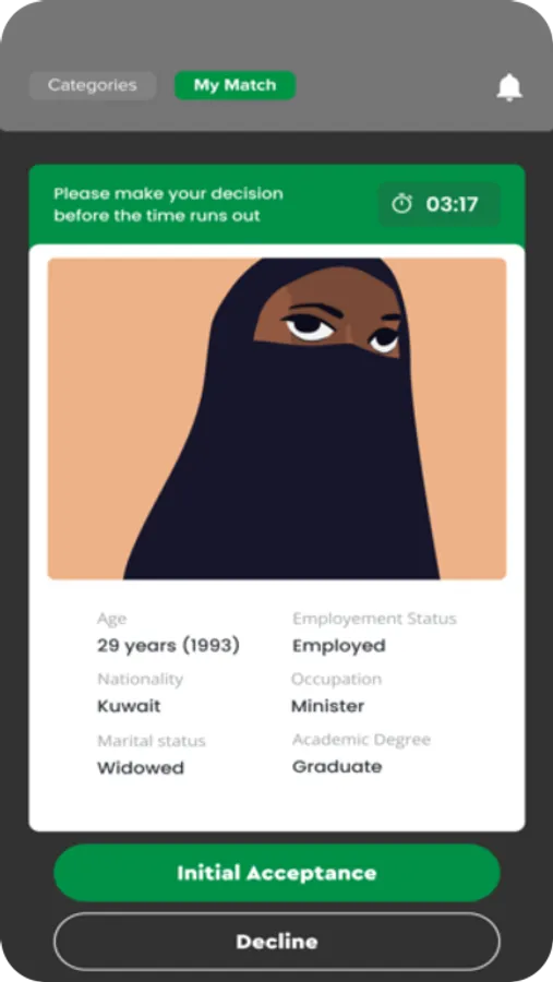 The sole purpose of the Service is to automatically match potential husband and wife for lawful marriage only, and not for any other purposes, based on specific criteria provided by users. The Service paves the way for lawful engagement. The Batzawaj App’s role ends with the mutual acceptance of both parties.