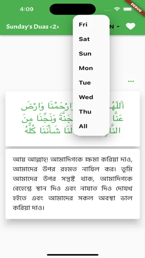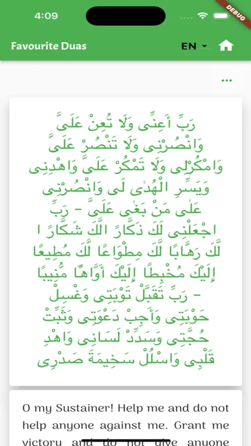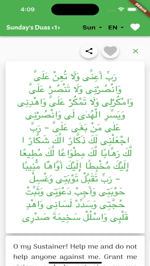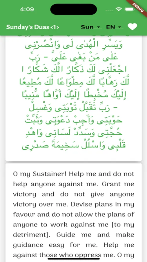 - Displayed du'as by days, you can swipe for previous and next du'as.
