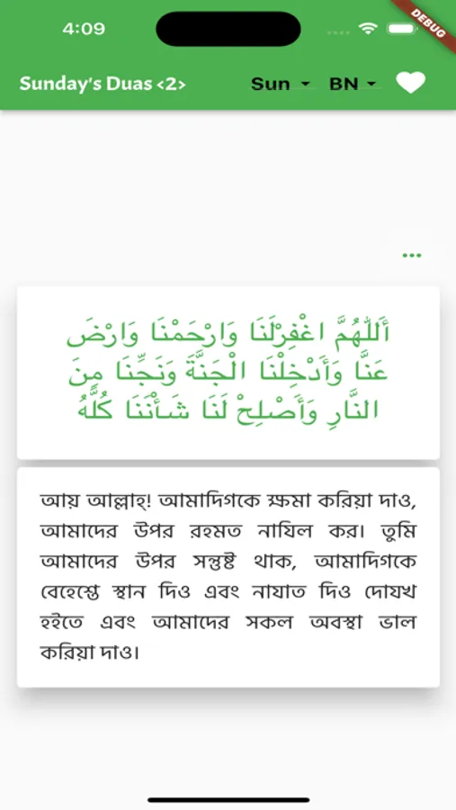 This app contains around 200 du'as from the Qur'an and Hadith in Arabic, along with their translations in English and Bangla, displayed by days for daily reading.
