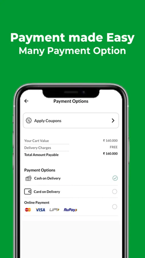 We accept cash on delivery, UPI, credit card and debit card: