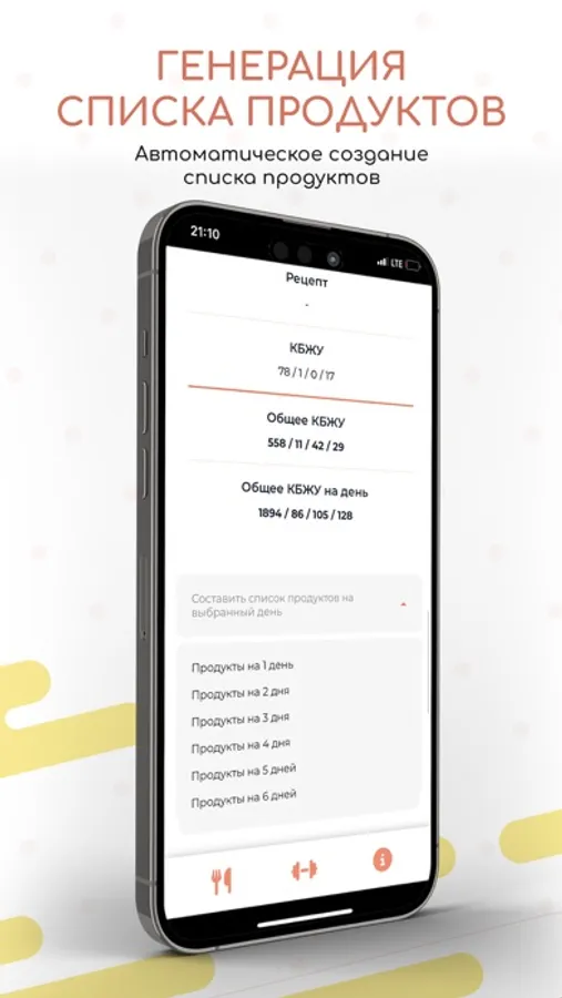 - автоматическое создание списка продуктов.