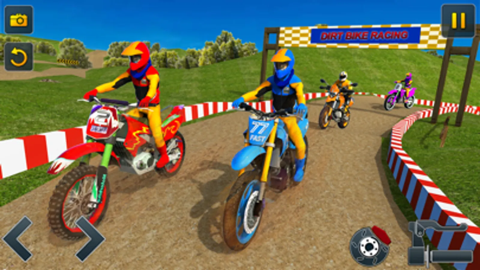 Start extreme dirt bike racing game and work your way up through 4 different motorcycles, each with different speeds and handling. Get the fastest bike and dominate your friends!