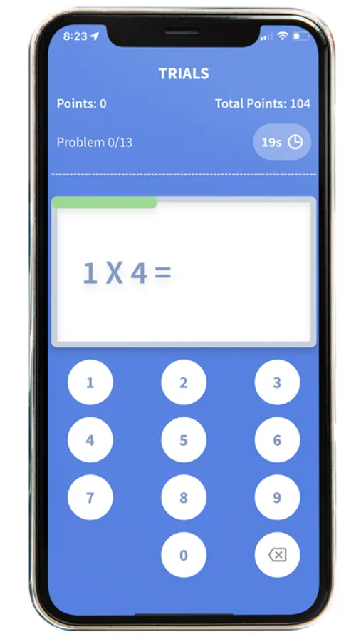 eMathmind features three stages of learning composed of three rounds (or stars). Each round tackles accuracy, speed and retention in subtly different ways by presenting a full set of multiplication problems for a given multiplier (e.g. 1’s, 0’s, 5’s).