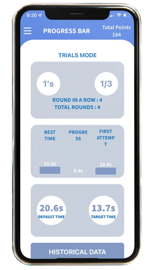 The Trials session promotes a high level of mental performance. In particular, the learner is typically presented with at least three rounds. To achieve success and advance to the next session the learner must demonstrate an appropriate speed and accuracy for three consecutive rounds.