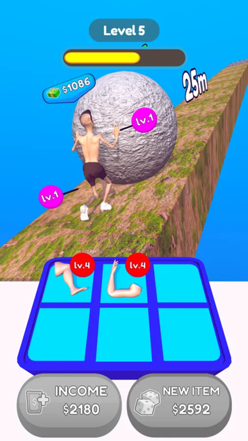 - Increase your income value by pushing the rock