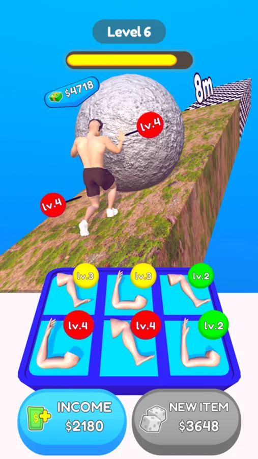 - Get body parts, merge them and improve your pushing skills