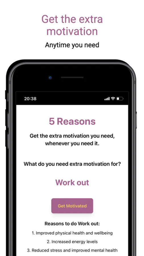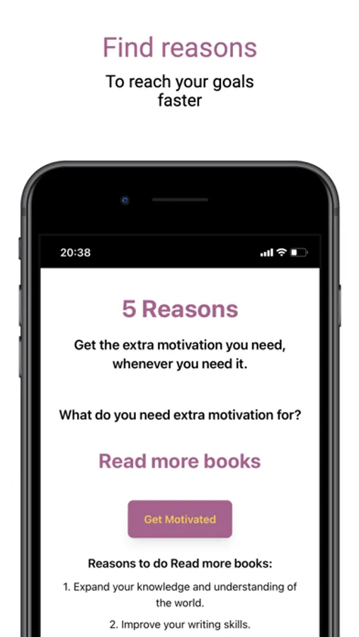 5 Reasons is an app that helps users stay motivated and achieve their goals by providing them with five reasons to complete a task or pursue a particular objective.