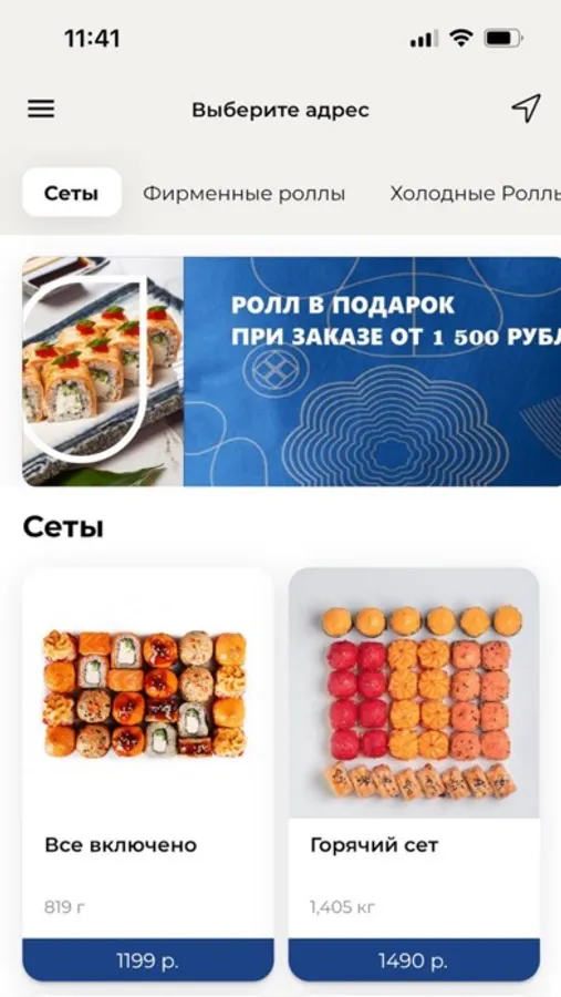- Выберите категорию блюд и добавьте блюдо в корзину