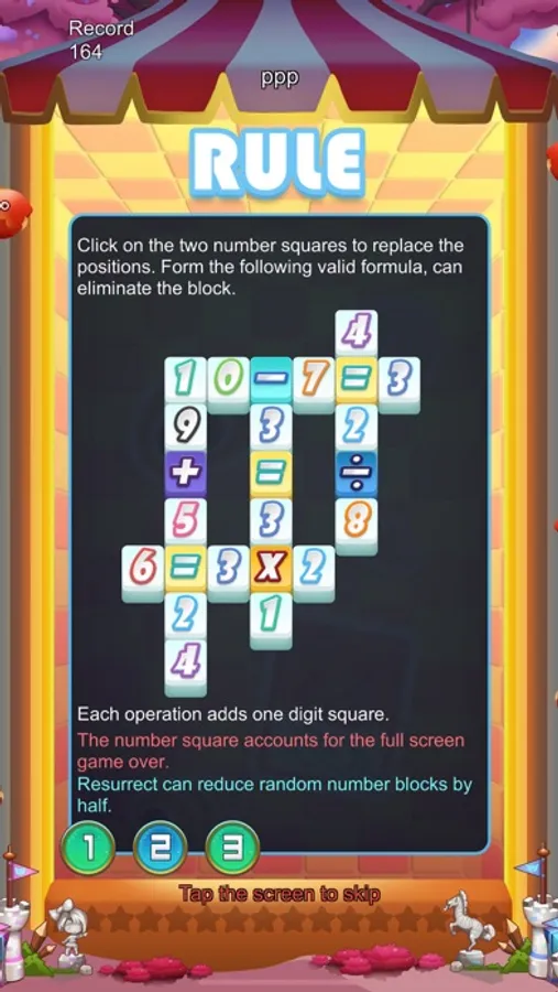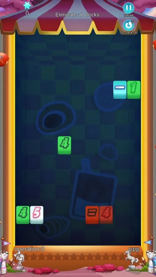 *This game combines arithmetic and judging to choose a combination of gameplay, form an equation to eliminate numbers and symbols, and complete the elimination goal. The red blocks in the game cannot be moved.