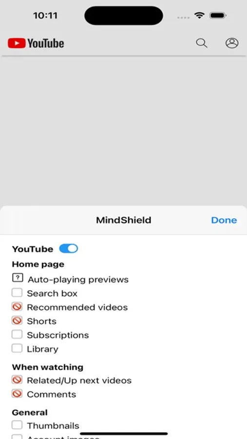 Mindshield is a browser extension I built to help myself avoid being distracted online. It lets you hide distracting elements on YouTube, Facebook, Twitter, Instagram, LinkedIn, and Google Search. For example, on YouTube you can hide recommended videos (and more), on Facebook you can hide the newsfeed and ads in the sidebar, on Twitter you can hide trends, on Google Search you can hide ads, or highlight them, etc.