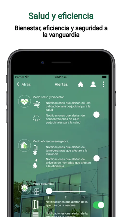 Gracias a la tecnología IoT podemos controlar los sensores y actuadores de greenteQ wave, así como conocer las alertas informativas asociadas al bienestar, eficiencia energética y seguridad de su vivienda. La app de greenteQ wave ha sido diseñada para sacarle el máximo partido a sus cerramientos con tecnología greenteQ. Controlar la ventilación de sus ventanas desde cualquier parte del mundo, abriendo y cerrando la hoja, posicionando la persiana motorizada en el lugar deseado, son algunas de las funciones que greenteQ wave puede hacer por usted.
