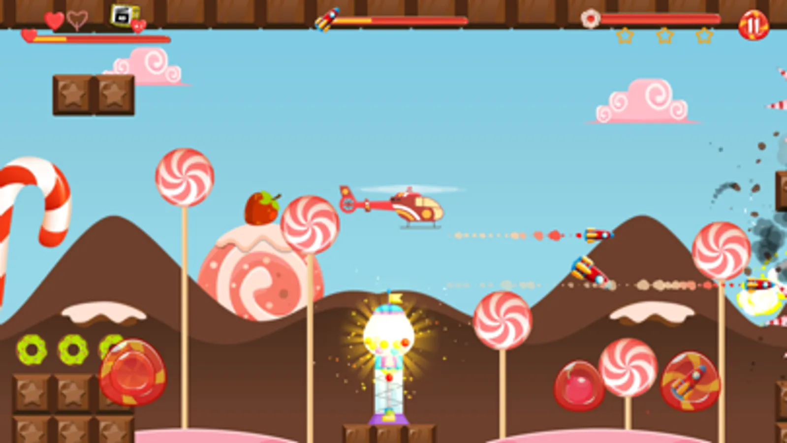 Journey through the sweet and delicious Candy World, wipe out countless monsters, open doors and portals, use countless power-ups to upgrade your character and jet-pack through obstacles to reach your destination.