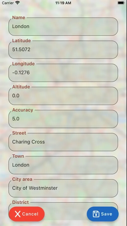 Please note that address information is provided by external API system from Google or Apple respectively. It is provided as best guest based on the information available and therefore it is not always accurate. Internet connection is needed to retrieve the address.