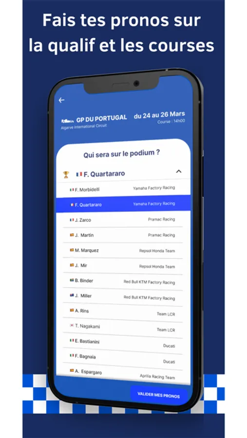 - choisir de pronostiquer sur la F1, la MotoGP, ou les deux