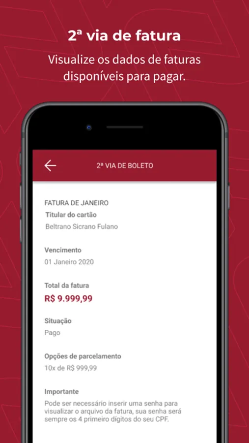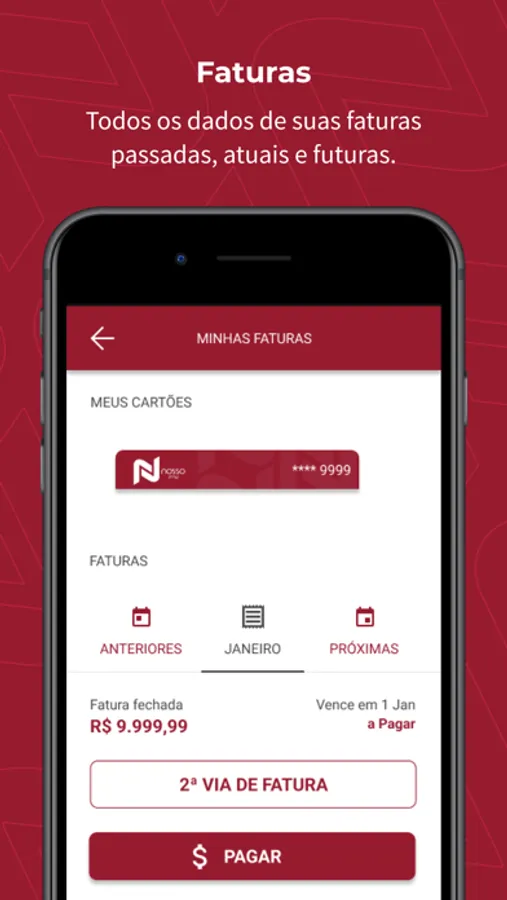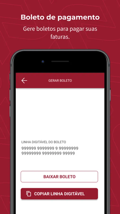 • Ver detalhes das faturas e gerar boleto para pagá-las;