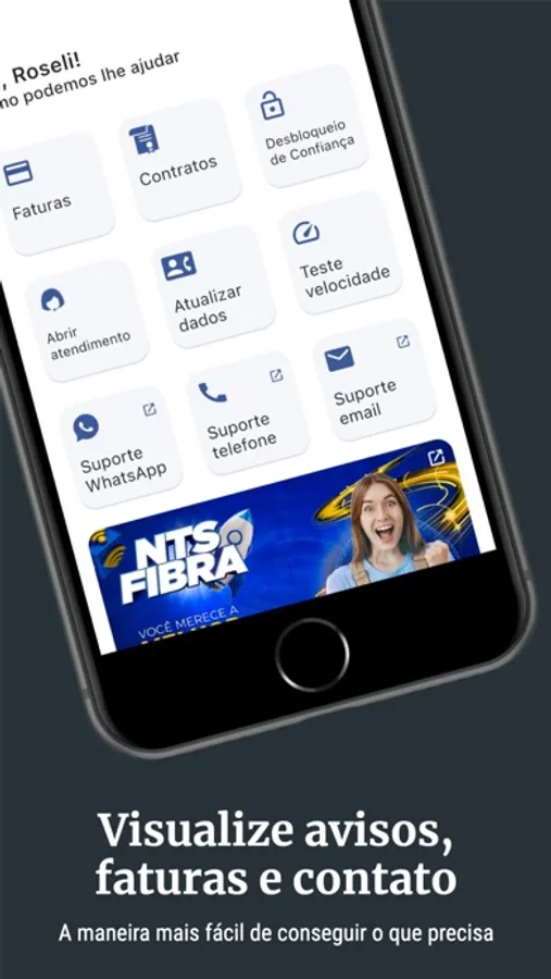 - notificações sobre sua conexão e boletos