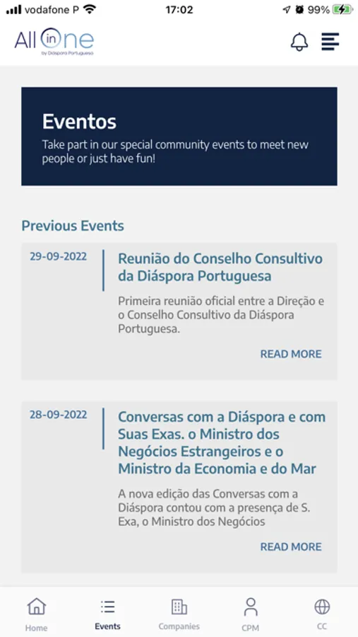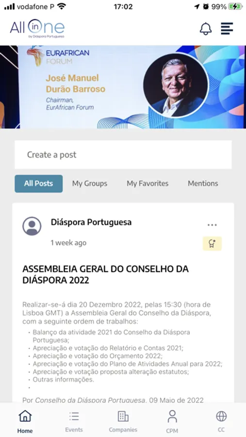 Para além de conectar com outros Conselheiros, os utilizadores do All In One poderão encontrar na aplicação todo o conteúdo da Diáspora Portuguesa, como notícias e eventos, assim como criar e participar em grupos de discussão, partilhar imagens, documentos, notícias com a rede de Conselheiros.