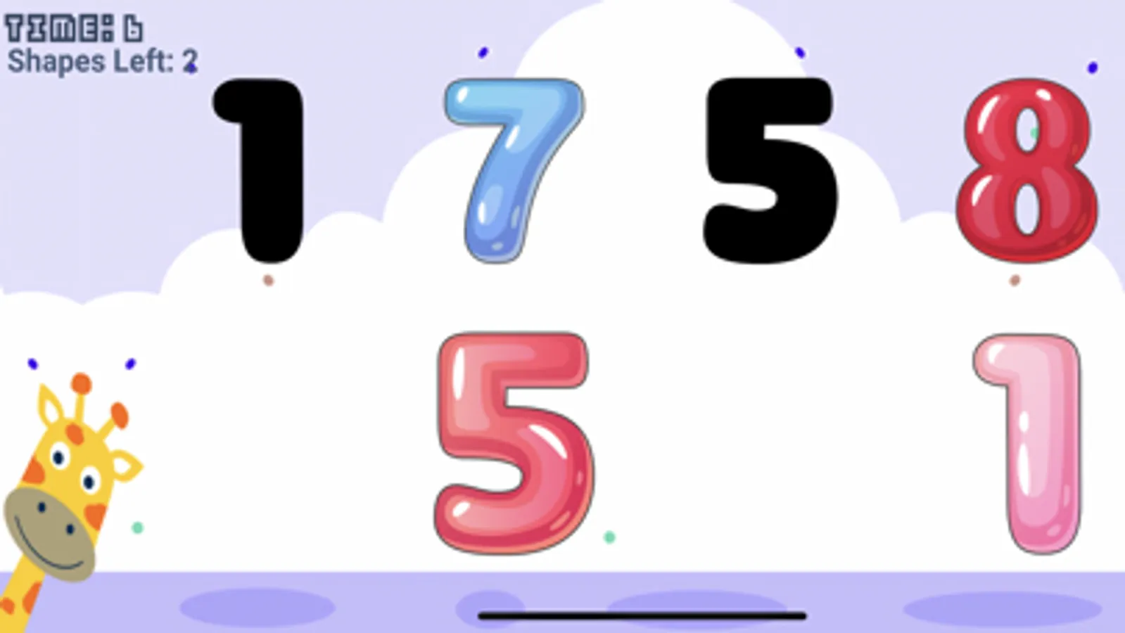 Kids can learn about numbers, by listening to the name of each number and looking at the shape of each number. By playing this game kids become more familiar with the numbers.