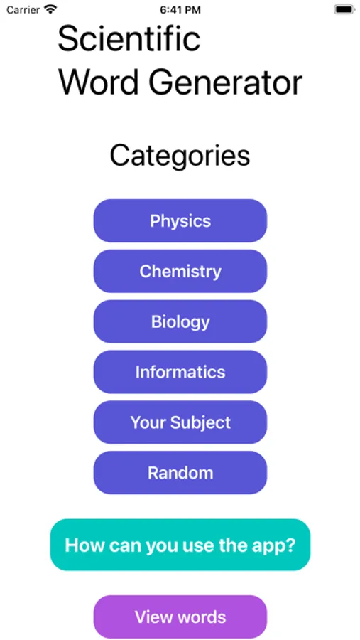 Scientific Word Generator is an application for repeating and using scientific terms of physics, chemistry, biology, informatics. With the help of a word generator, you can organize various games for students who study these subjects in English.