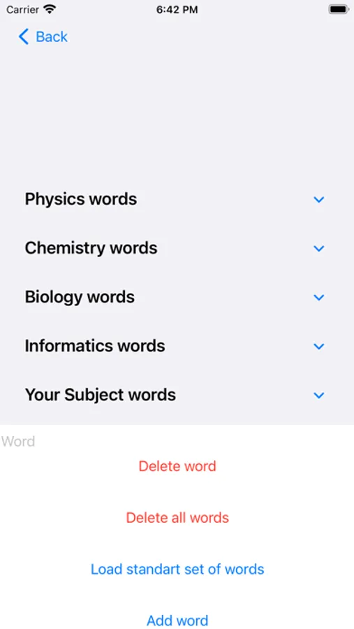 - Going to "View words" you can also view a list of words, delete a single word or all at once.