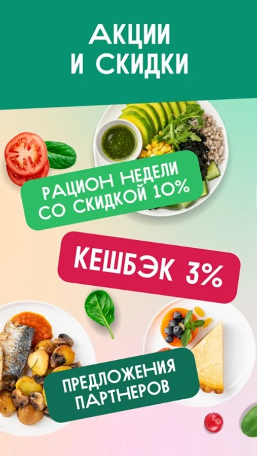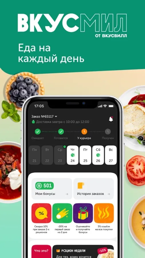 Скачивайте приложение, чтобы подобрать и заказать рацион питания, остлеживать и редактировать доставки, просматривать свое меню.