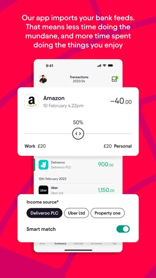- Bookkeeping: With our revolutionary 'Smart Match' feature reconciling your business expenses has never been easier! You can also upload receipts to ensure your tax return is 100% HMRC safe