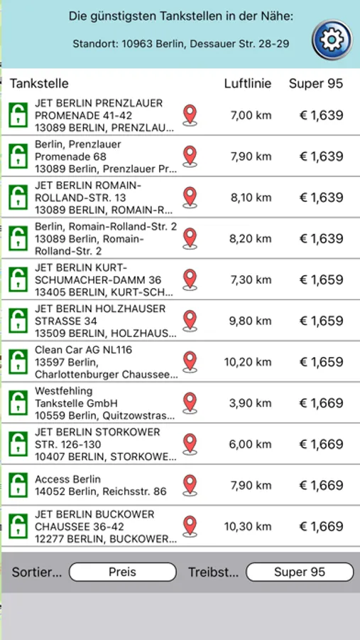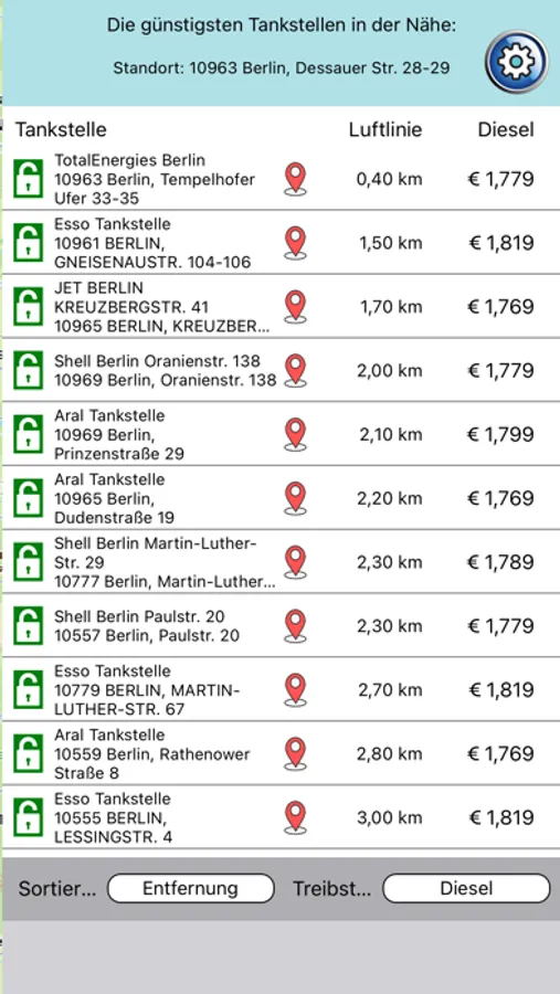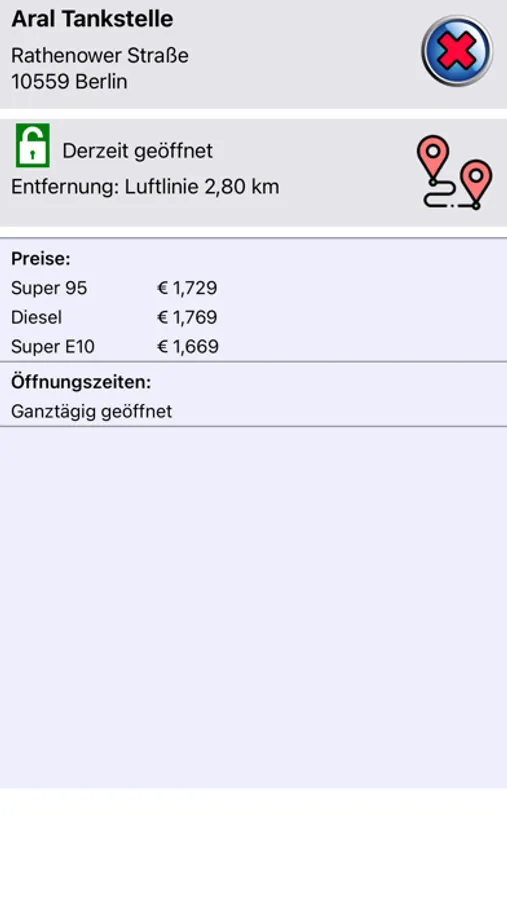 Günstig tanken ist nun ganz einfach. Finde die günstigste Tankstelle im Umkreis von 10km mit allen Detailinformationen, wie Preis, Öffnungszeiten, Shopangebot und Zahlungsmöglichkeiten. Auch die schnellste Route zur Tankstelle kann angezeigt werden.