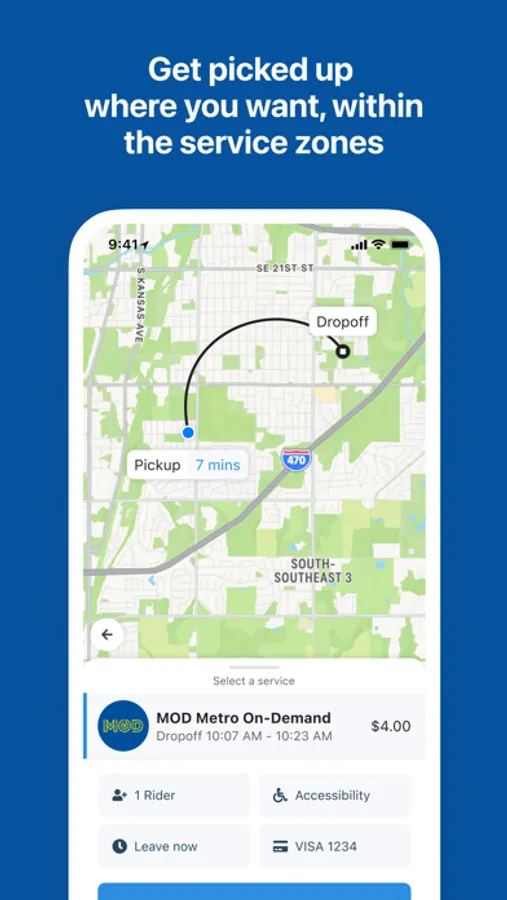 MOD Topeka will efficiently connect you via microtransit vans to your local destinations within the zones of service as well as connecting to Topeka Metro fixed-route buses.