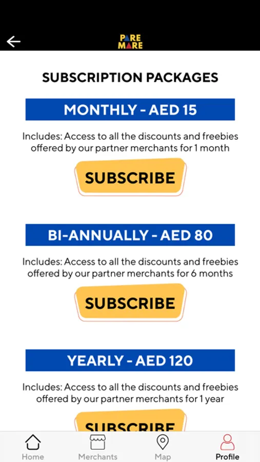 PARE MARE is a discount app targeted to the Filipino community in the UAE. It aims to bridge the gap between consumers and merchants by providing a subscription-based model which is affordable for the subscribers and will incur zero cost for the merchants.