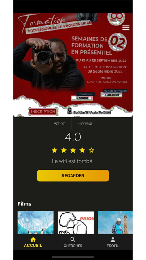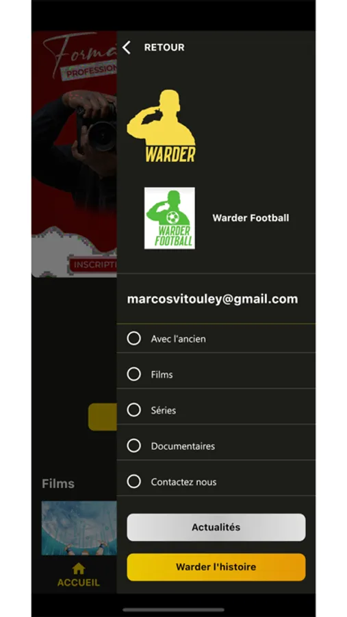 Warder est une application de divertissement permettant de visualiser des films, des séries ou des documentaires.