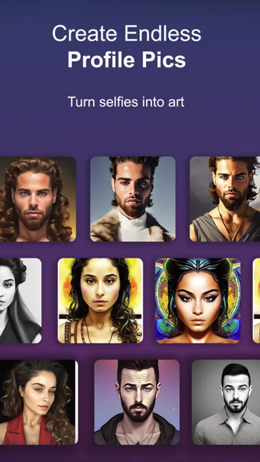 Experience the power of AI as you generate hundreds of unique images and stand out on social media with entirely new visuals. Plus, stay tuned for our upcoming theme packs, which allow you to purchase sets of images by style that match your personality.