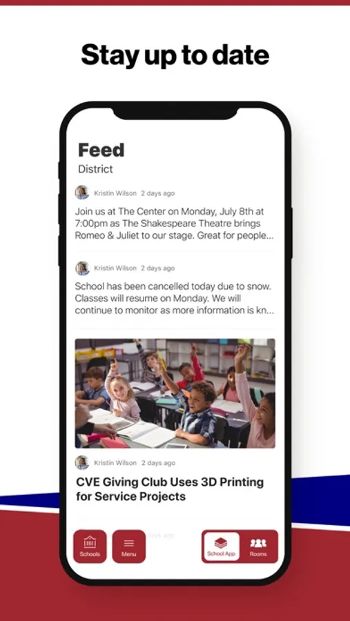 In the Live Feed is where you'll find updates from the administration about what's going on in the district right now. Whether that's celebrating a student's success, or reminding you about an upcoming deadline.