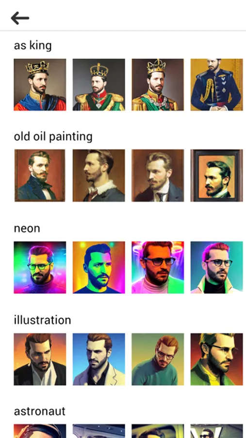 See yourself as an astronaut, a medieval warrior, a cyberpunk character or have your portraits painted in different styles!