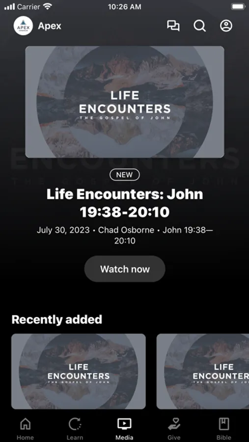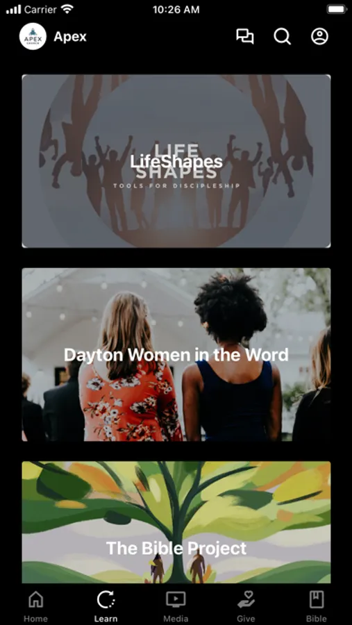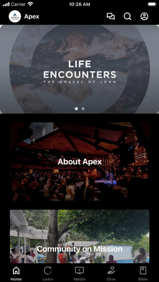 This app will help you stay connected with the day-to-day life of Apex Church. With this app you can: watch or listen to messages or discipleship resources; stay up to date with push notifications; share your favorite messages via text, social media, or email; and download messages for offline listening.