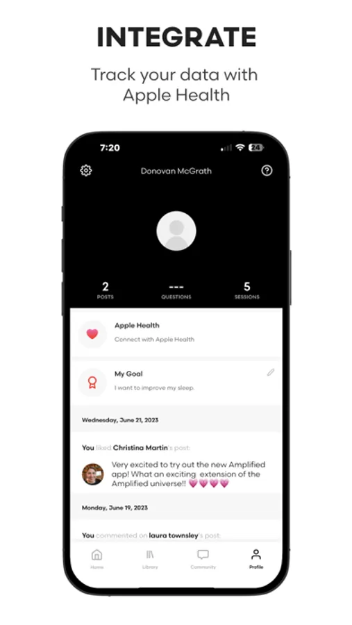 The Amplified Yoga app offers an intuitive and user-friendly interface, allowing you to effortlessly navigate through various curated programs and personalized recommendations. Track your progress, set goals, and celebrate milestones as you embark on your unique journey of self-discovery. Sync your activity data with Apple Health to keep all your health and wellness information in one place.