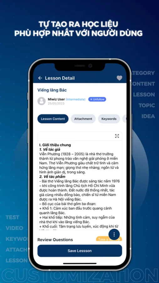 - Reminder to review scheduled lessons with basic knowledge such as: summary, keywords, review questions.