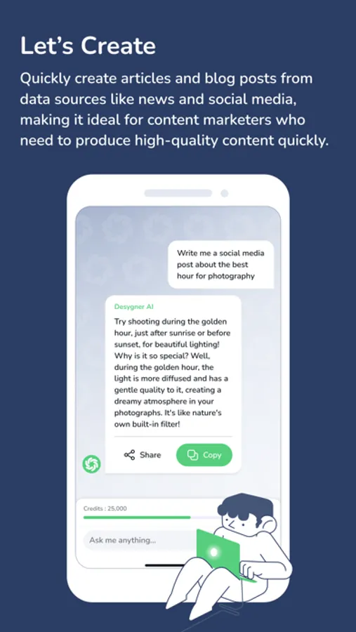 Equipped with cutting-edge machine learning algorithms, Chat AI understands your questions and generates human-like responses, making you feel like you are chatting with your knowledgeable friend. Our Chat AI app can also learn from your behavior and preferences, making it even more personalized and efficient over time.
